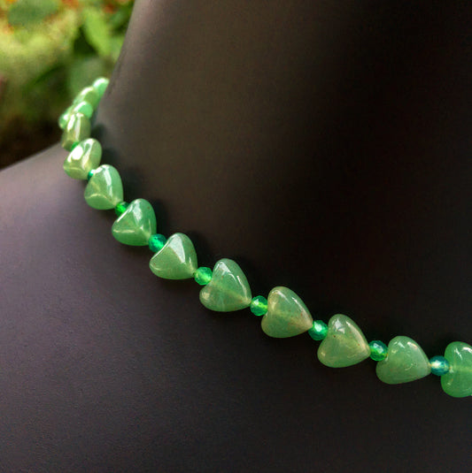 Aventurine Heart & Green Onyx, 14 kt gold filled Choker necklace
