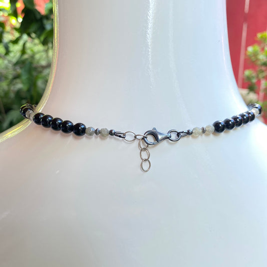 Oxidized Sterling Silver Chain with painted Onyx Cameo with Labradorite Gemstone Pendant necklace