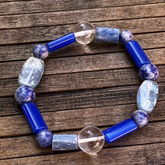 Men's Blue Onyx, Kyanite, Clear Quartz and Sodalite Gemstone stretch bracelet