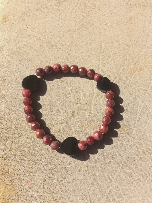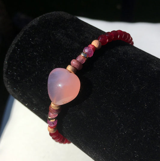Women's chalcedony Pink Heart Gemstone, red jade, pink tourmaline, pink sapphires & rubies bracelet