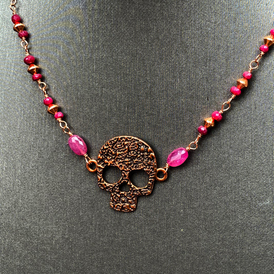 Black Labradorite and Onyx gemstone Skull Bracelet