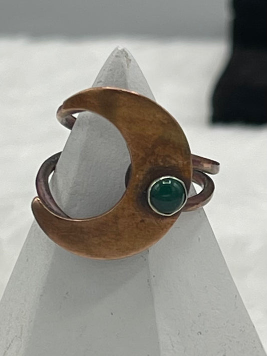 Copper and Sterling Silver Moon Ring with Green Onyx