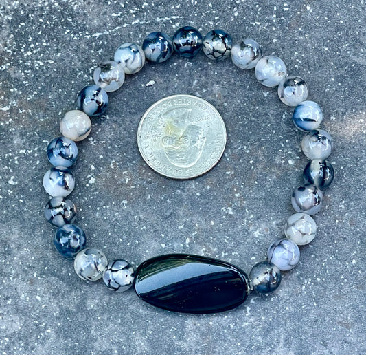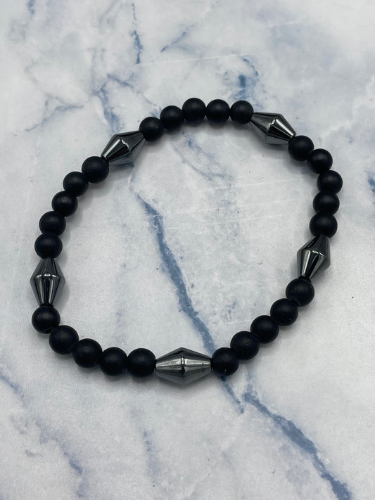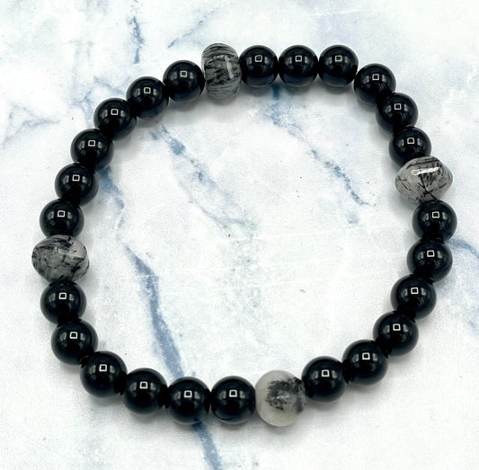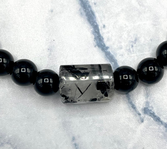 Black Onyx gemstone and Tourmaline Quartz Bracelet