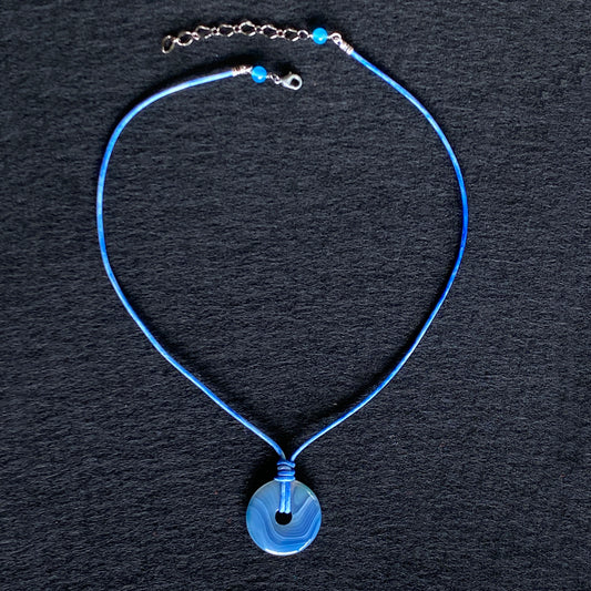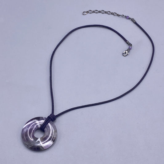 Sbowflake Obsidian Gemstone Donut and Leather Necklace