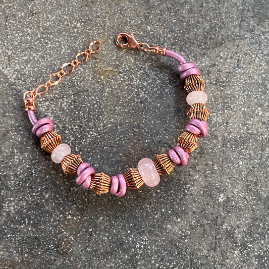 BoHo Bali Gemstone and Leather with copper Clasp Bracelets