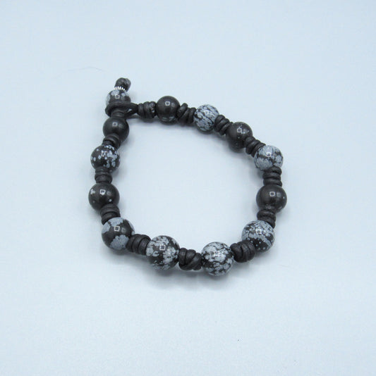 Men's Knotted Leather and Gemstone clasp bracelet