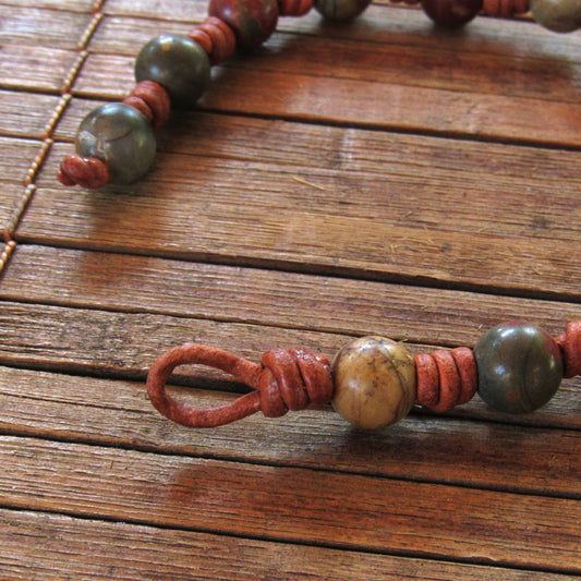 Hand knotted Picture Jasper Gemstone Leather Bracelet