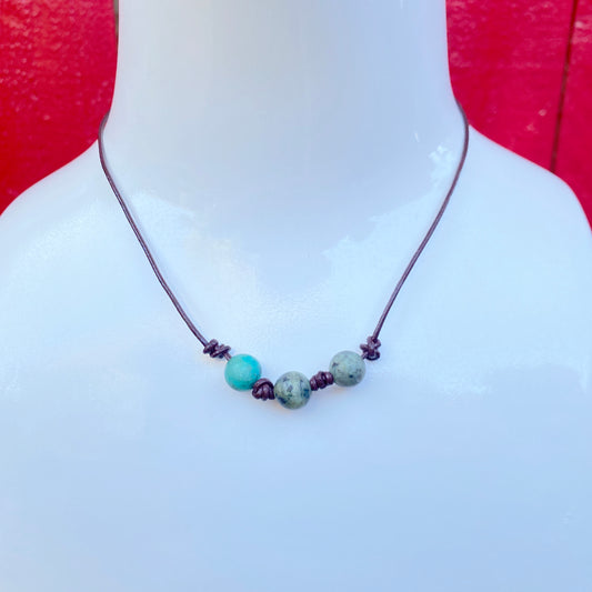 Men’s Leather African Turquoise gemstone Necklace w/ Sterling Silver Clasp