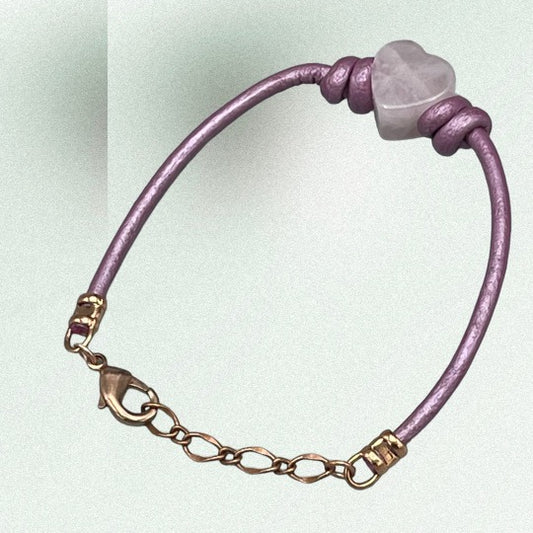 Rose Quartz Heart and Leather Bracelet