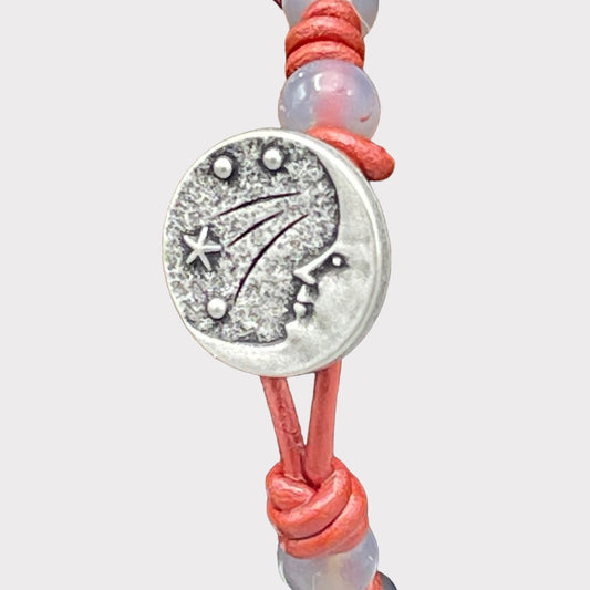 Gray agate and Moon Leather Bracelet