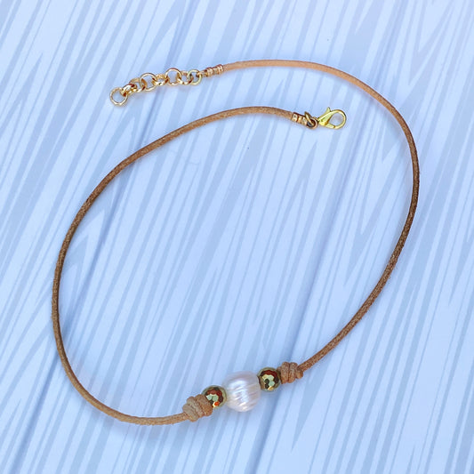 Sold outGenuine Pearl Leather Necklace