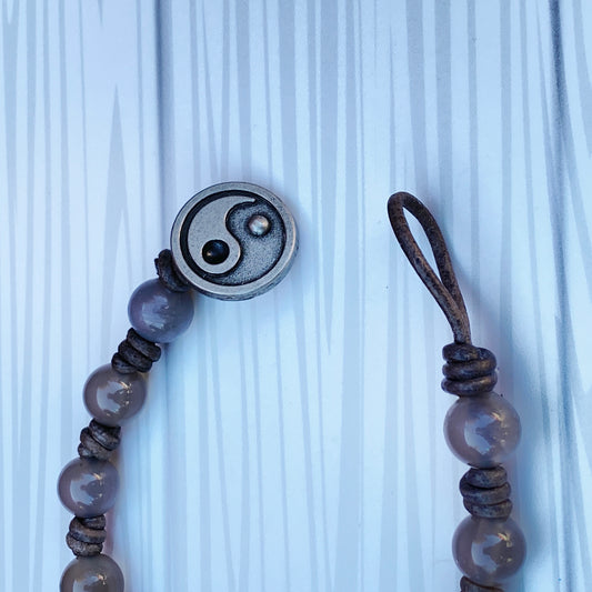 Grey Agate gemstone Yin Yang leather Bracelet