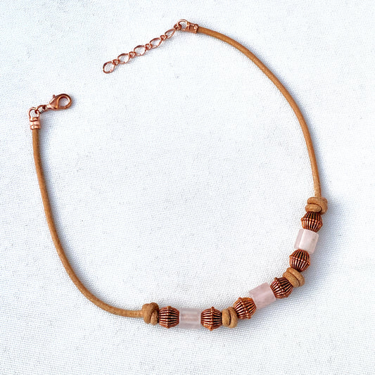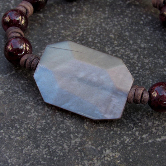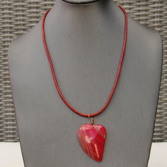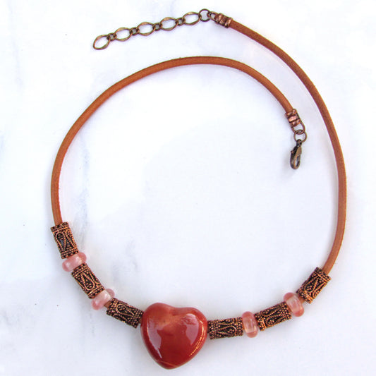 Mookaite gemstone Heart, Cherry Quartz, Copper, and Leather Necklace