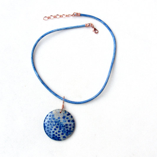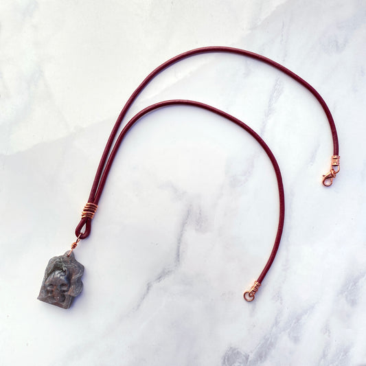 Rose Chrysanthemun Coral Fossil Pendant, Copper, and Leather necklace