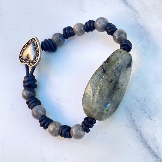 Leather bracelet with Labradorite gemstones
