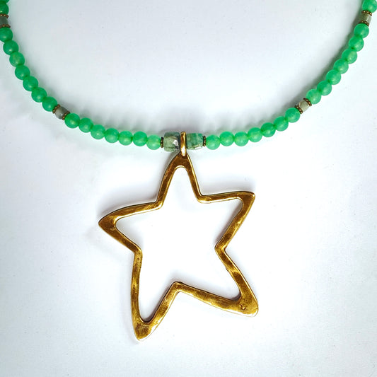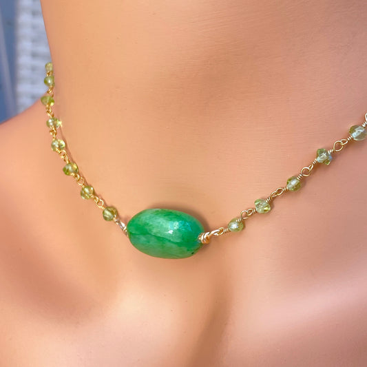 Emerald, Peridot gemstone and Gold over sterling silver choker