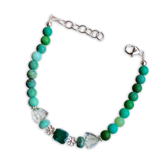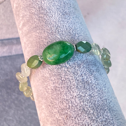 Green Emerald, Green Turquoise, and Prehnite gemstone Bracelet