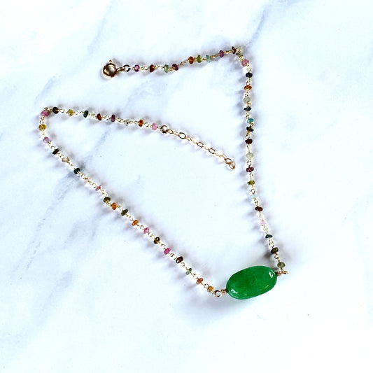 Emerald, Mixed Tourmaline gemstone and Gold over sterling silver choker