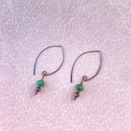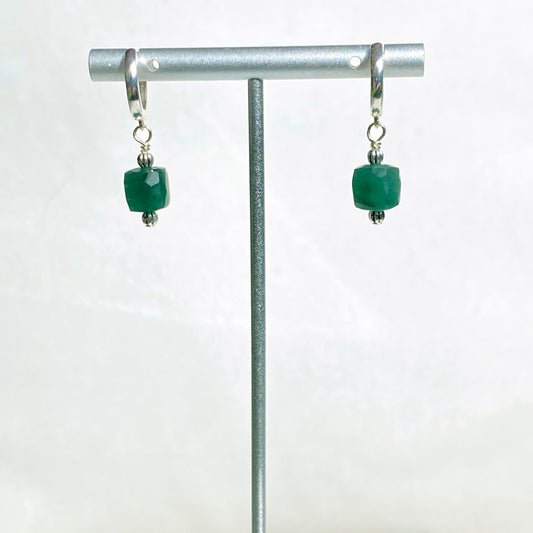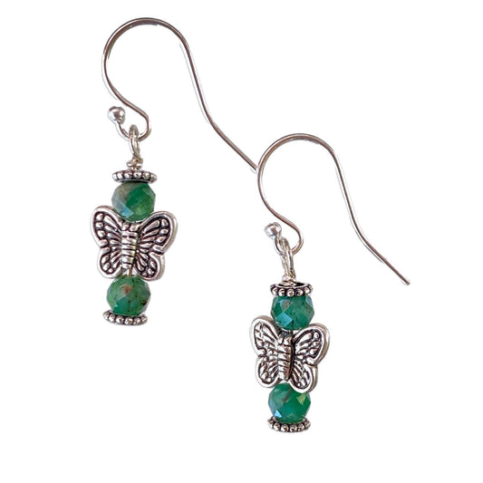 Emerald gemstones and Sterling Silver Butterfly dangle and drop Earrings