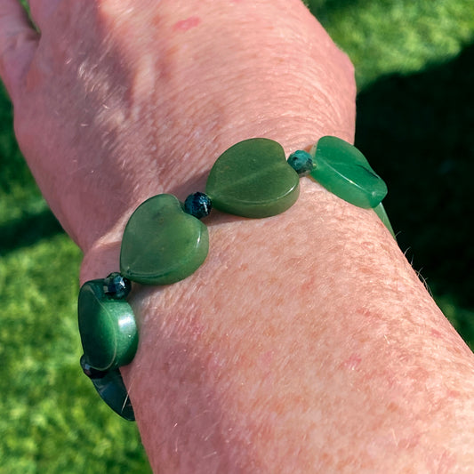 Green Aventurine gemstone Hearts & genuine Emerald Bracelet