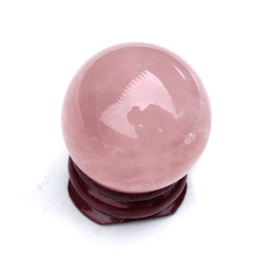 Natural Rose Quartz crystal gemstone semiprecious sphere with stand