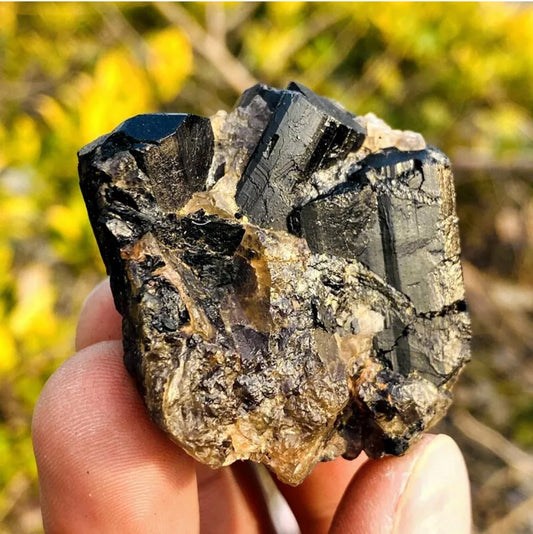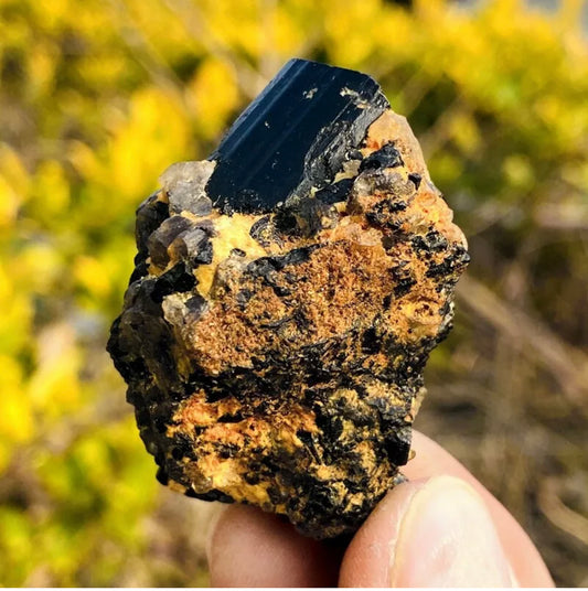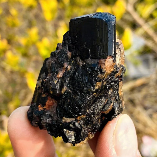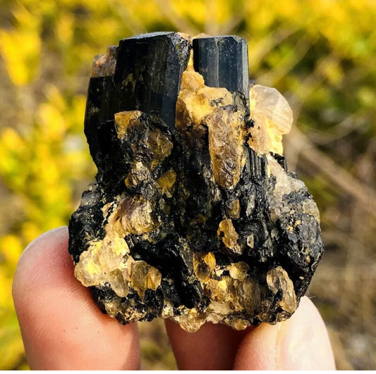 Natural black tourmaline gemstone quartz crystal mineral specimen