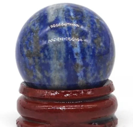 Natural lapis lazuli crystal gemstone semiprecious sphere with stand