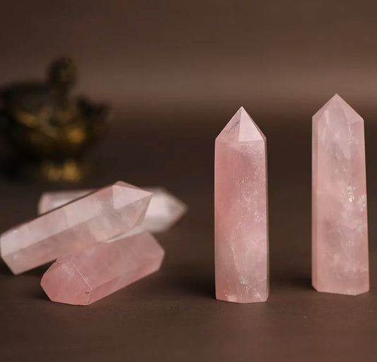 Pink Rose Quartz gemstone Crystal Point Wand Obelisk Natural Healing
