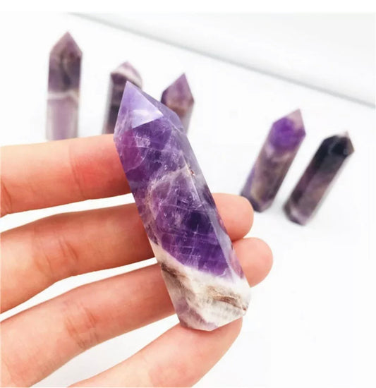 Natural Banded Chevron Dream Amethyst Quartz Crystal Point Wand Healing