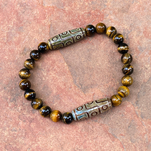 Tiger’s Eye and Tibetan Agate gemstone Beaded Stretch Bracelet
