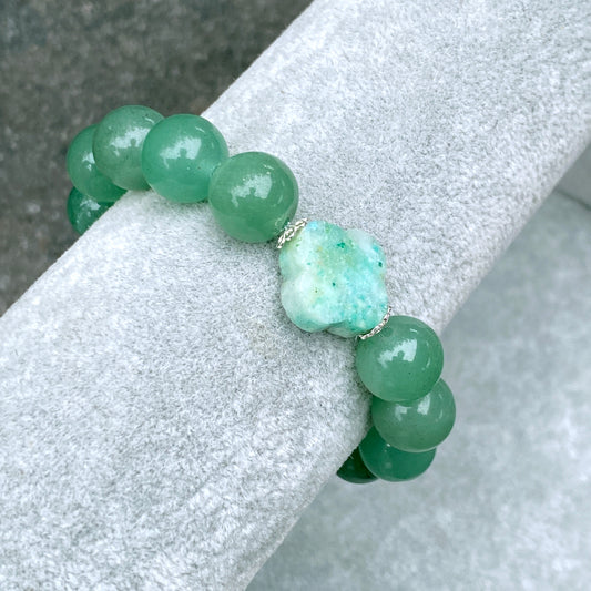Chrysocolla Clover and Green Aventurine Beaded Stretch Bracelet