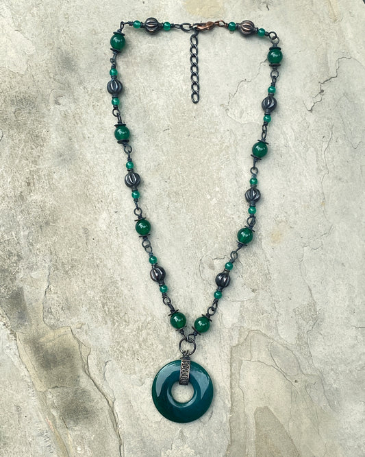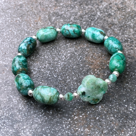 Chrysocolla Clover and Emerald gemstone Beaded Stretch Bracelet