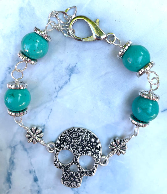 Gemstone with Metal Sugar Skull dangle and drop Earrings