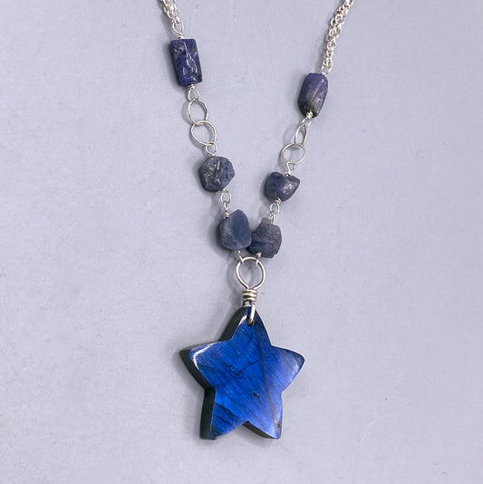 Labradorite Star, Sapphire, and Tanzanite Necklace