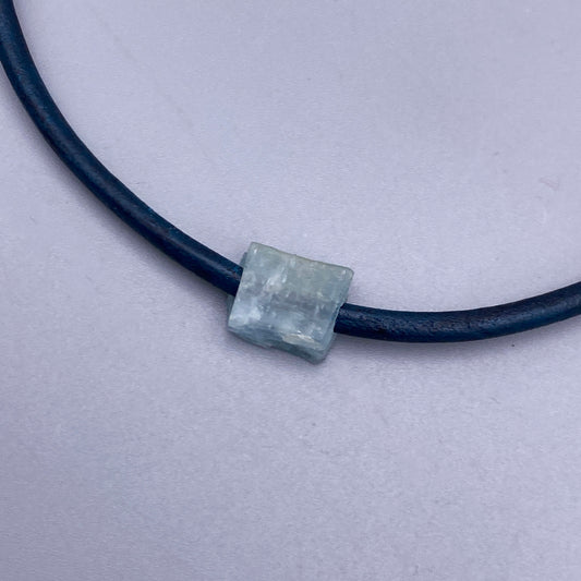 Raw Aquamarine gemstone Leather Necklace