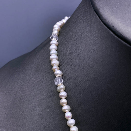 Pearl and Silver Peace Sign Pendant beaded necklace