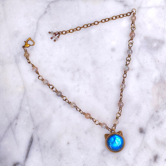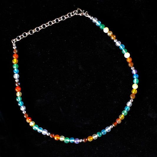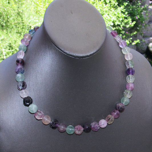 Rainbow Fluorite gemstone Beaded Flower Necklace