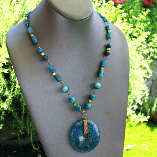 Apatite gemstone Donut shaped Pendant chain Necklace