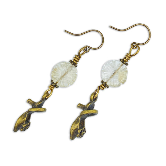 Citrine gemstone and Brass Shoe Earrings
