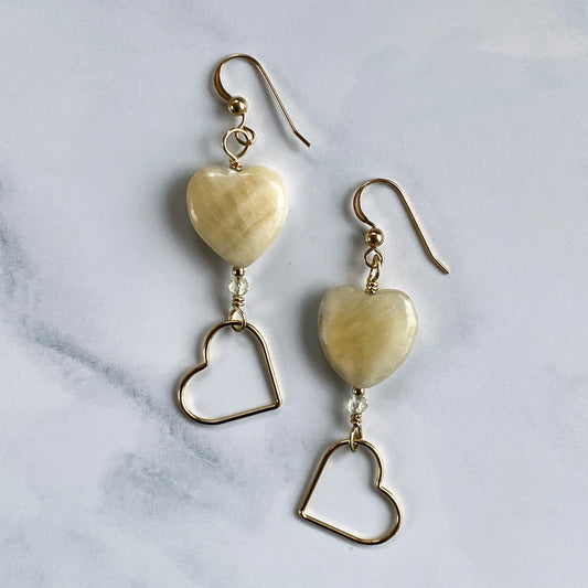 Yellow Topaz gemsotne and gold Heart Earrings