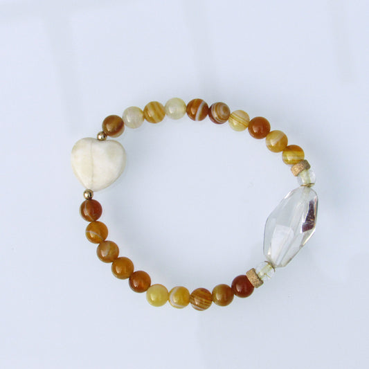 Yellow agates, Lemmon Quartz, yellow Topaz gemstone Heart Bracelet