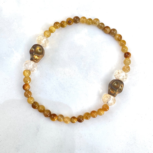 Yellow Agates, Rainbow Hematite gemstone Skull, Citrine Women’s Stretch Bracelet