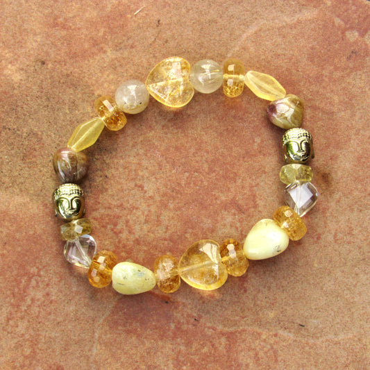 Women's Golden Buddha and Citrine, Calcite, Topaz, Jasper Gemstone Bracelets
