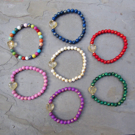 Metallic Jade and Citrine Gemstone Heart Bracelets with 14 kt gf