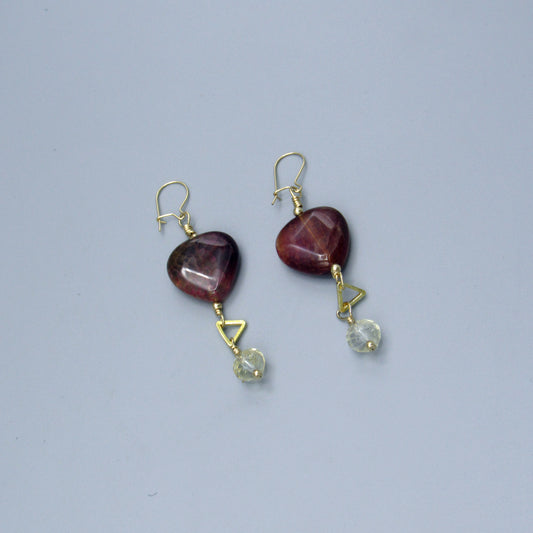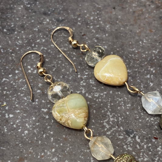 Buddha hematite, citrine, yellow agate heart, gold filled drop earrings