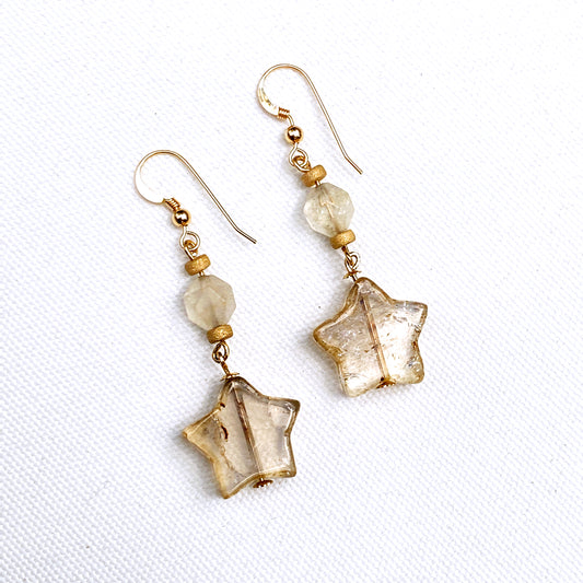 Lemon Quartz Stars & Citrine Gemstone with 14 kt gold filled Drop Earrings
