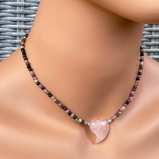 Chalcedony, Cherry Quartz, Garnet, and pink Tourmaline gemstone bracelet