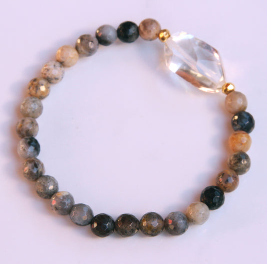 Natural Rainbow Opal gemstones, Lemon Quartz, 18 Kt Gold bracelet