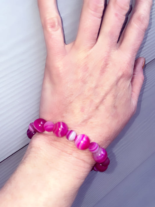 Pink Banded Agate gemstone Chunky Beaded Bracelet