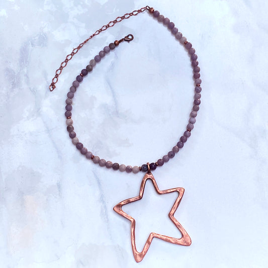 Pink Tourmaline gemstone with Copper Star pendant Necklace